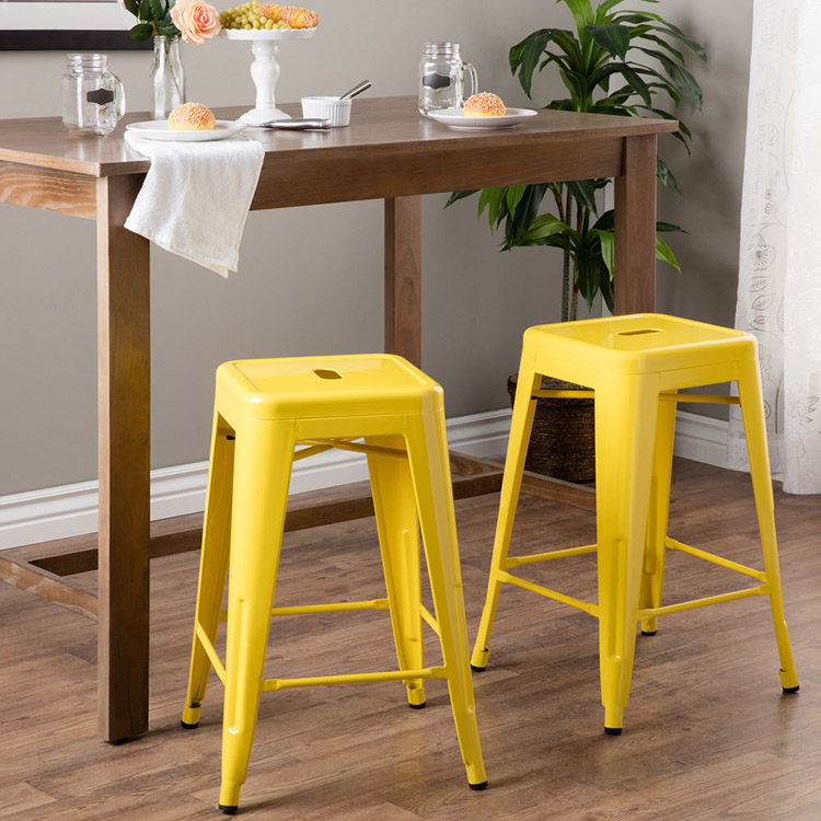 10. Những chiếc ghế với gam màu nổi và bắt mắt là thứ không thể thiếu trong bếp nhà bạn. Với chất liệu kim loại, bạn có thể bỏ thêm nệm để ngồi thoải mái, và dễ mang ra ngoài trời khi cần.
