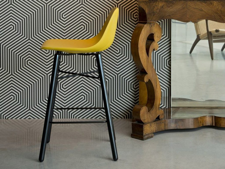 2. Với những phòng bếp tối giản nhất, bạn có thể sử dụng những chiếc ghế có họa tiết. Những chiếc ghế đẩu màu trắng với hình lục giác như này sẽ mang lại sự tinh tế cho không gian của bạn.