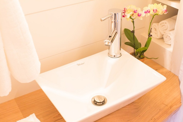 Có hệ thống chứa nước nhỏ như chiếc bồn ở gầm của ngôi nhà nên những nội thất như bồn rửa tay, rửa bát… như thế này vẫn được sử dụng bình thường.