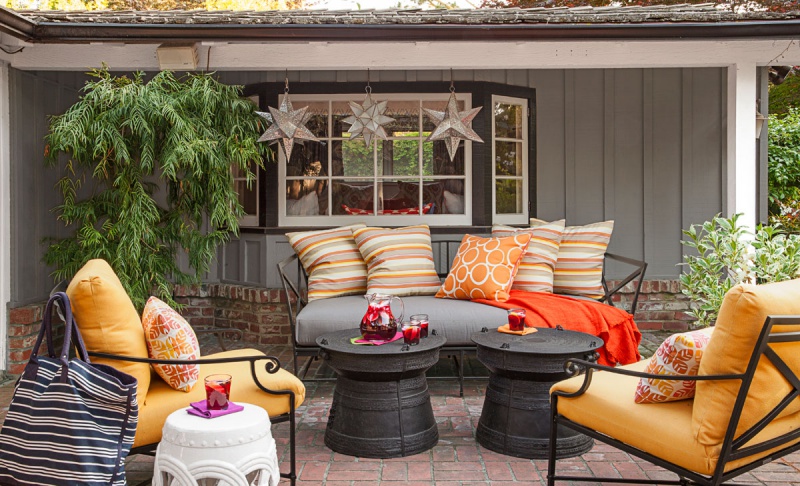 Màu vàng cam cũng là một trong những gam màu tuyệt vời được lựa chọn trang trí cho không gian thư giãn ngoài trời thêm tươi tắn và bình yên.