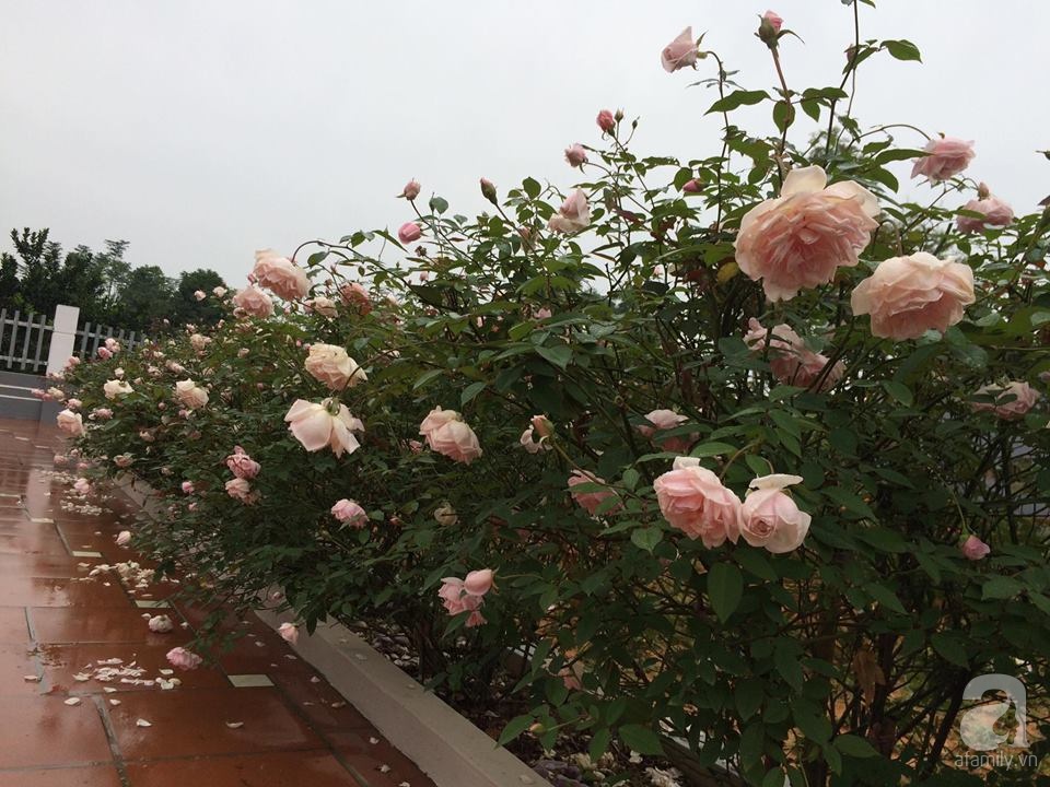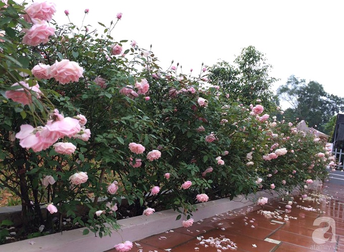 Căn nhà vườn nằm trên đồi núi Ba Vì, thoai thoải nắng gió đủ để chị Ánh Quyên có thể chọn lựa những giống hoa hồng phù hợp. Sau khi xây nhà, chị thuyết phục chồng thiết kế khoảng sân vườn với cách quy hoạch đơn giản nhất, phù hợp nhất để trồng hồng. Chị bắt tay vào mua cây, trồng cây khắp lối đi, khoảng sân nhỏ vào nhà và dọc theo hàng rào.