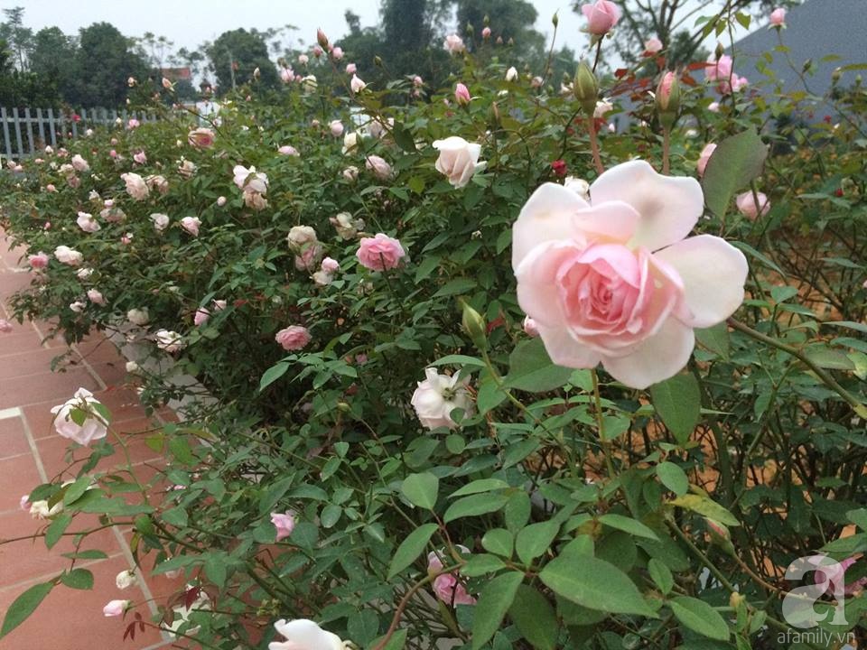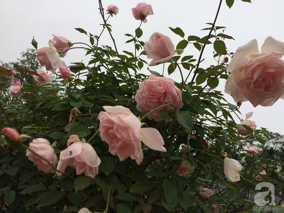 Chị Quyên cũng cho biết, vì chăm hoa thường xuyên, bón phân thỏ và xới đất nên các loại hồng chị trồng đều lớn nhanh, sai hoa, lại ít sâu bệnh.