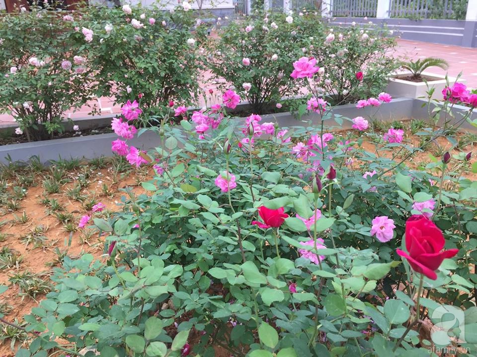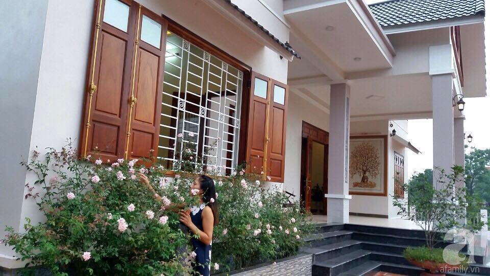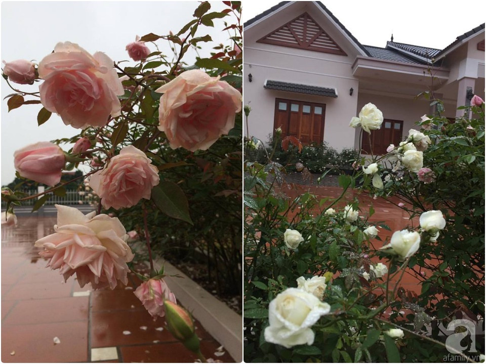 Ngay từ khi thi công nhà, chị Ánh Quyên đã vô cùng hứng khởi, tự vạch ra kế hoạch và bản thiết kế tiểu cảnh cho tổ ấm của mình. Vì thế, khi nhà còn chưa hoàn thiện, chị Ánh Quyên đã sở hữu những góc nhỏ rực rỡ với đủ loại hoa lá trong vườn. Khu vườn rộng thênh thang ấy được chị Quyên trồng cả các loại hoa theo mùa và ưu tiên nhiều nhất là hoa hồng.