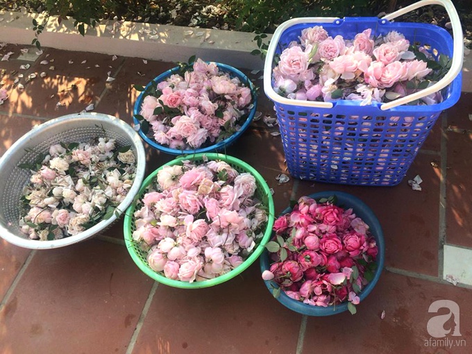 Chị Quyên thường cắt hoa để phơi khô uống trà dần hoặc mang đi tặng bạn bè, người thân. Mỗi sáng thức dậy, chị Quyên đều mở cửa sổ thật rộng để ngắm nhìn không gian bảng lảng sương mờ, mùi hương hoa hồng thơm dịu thoang thoảng cùng sắc hoa lung linh ngập tràn. Cuộc sống với chị là những chuỗi ngày vui tươi, hạnh phúc nhờ vườn hồng nghìn gốc của mình.