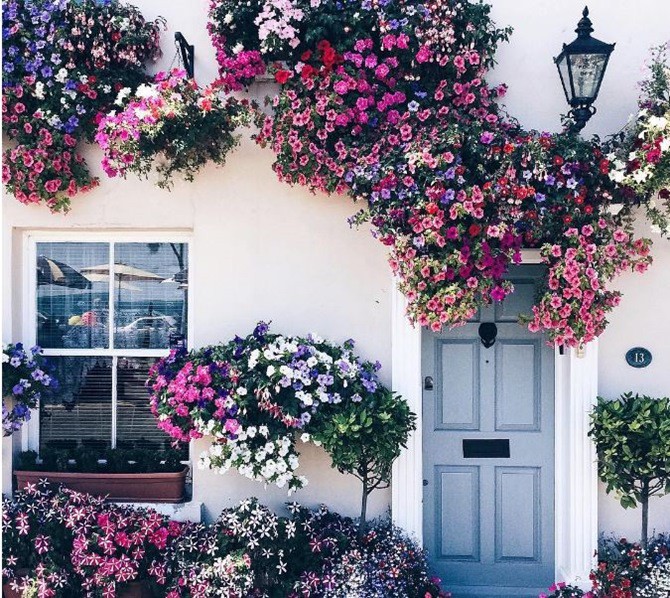 Khi ngoại thất là một phần vẻ đẹp của cuộc sống, mang lại cảm giác bình yên, dịu dàng cho mọi người khi trở về thì chắc chắn, những người yêu căn nhà đó sẽ tạo nên vẻ đẹp đáng yêu cho khoảng không gian này. Với bức tường được sơn màu xanh xám, cửa nhà có thể sơn màu vàng của nắng. Điểm tô cho khoảng ngoại thất bằng chậu hoa treo để mang đến vẻ đẹp rực rỡ và tràn ngập sức sống cho ngôi nhà.