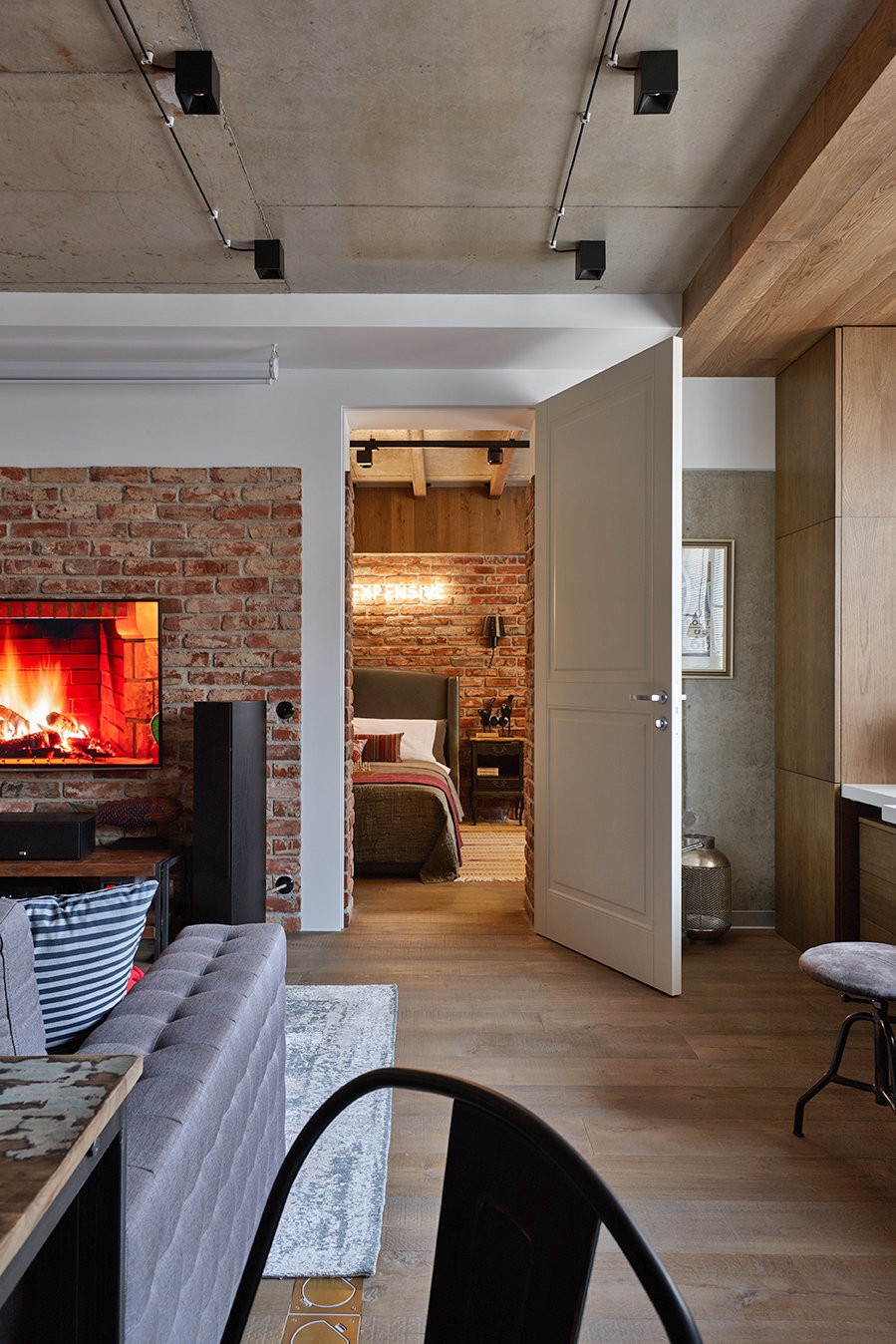 Với tông màu tươi sáng cùng những đồ nội thất được bố trí độc đáo, căn hộ 69m2 trở nên ấm áp và tiện nghi.