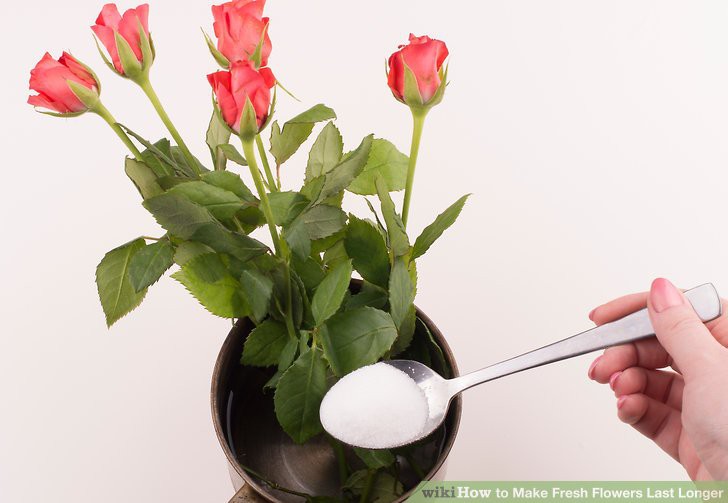 Không phải khi cắt khỏi gốc và cắm vào lọ rồi thì hoa không cần dinh dưỡng nữa. Nếu bạn muốn hoa được tươi lâu hơn thì có thể sử dụng vài thứ có sẵn trong gia đình, chẳng hạn như: đường, vitamin b1, thuốc aspirin, nước súc miệng listerine, hoặc đơn giản nữa là chỉ cần một ít giấm táo hoặc nước cốt chanh vì nước chanh làm tăng độ axit trong nước nên rất hiệu quả trong việc giúp hoa lâu tàn.