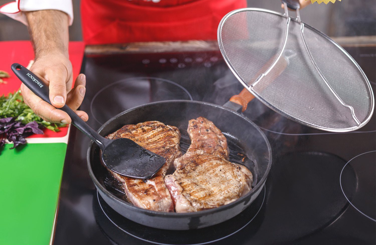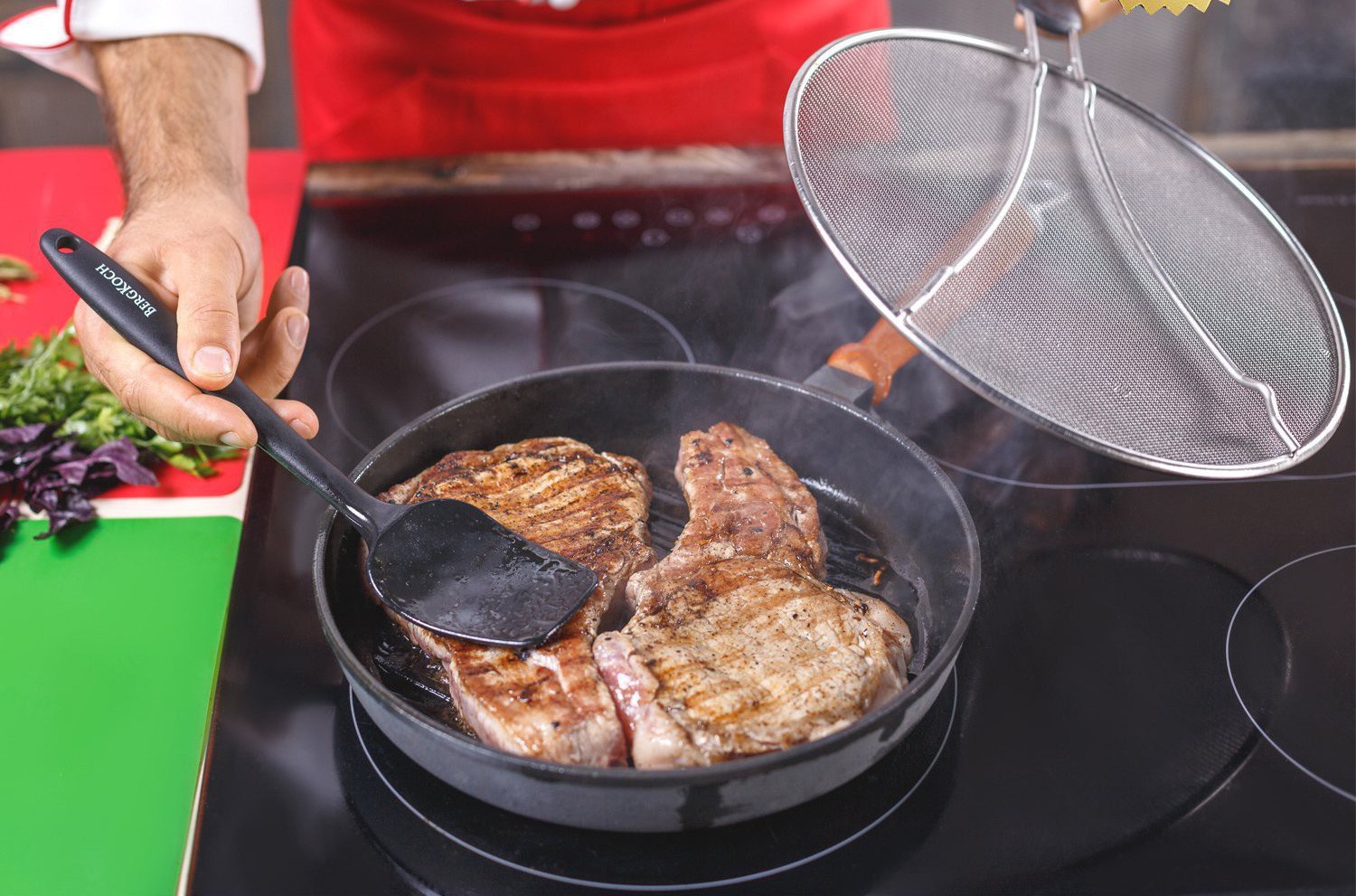 Trong những trường hợp "dầu sôi lửa bỏng" này, bạn có thể tham khảo chiếc vợt chống văng dầu mỡ Grease Splatter Screen của hãng Bergkoch.
